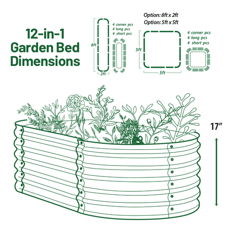 Olle Gardens 17" Tall, 12-in-1 Raised Garden Bed