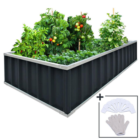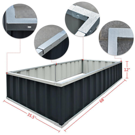 Kingbird Galvanized Steel Raised Garden Bed, Charcoal Grey