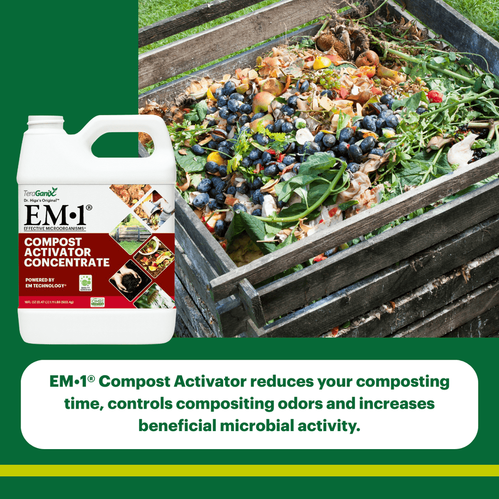 TeraGanix EM-1 Compost Starter is a powerful liquid microbial concentrate designed to accelerate composting while improving soil health and nutrient availability. Formulated with a broad spectrum of beneficial bacteria, EM-1 works synergistically to break down organic matter into rich humus while binding nutrients into stable, plant-available forms.