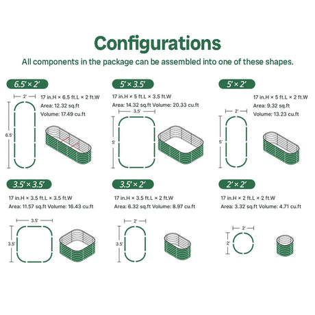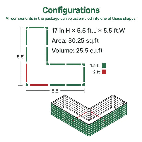 Vegega 17'' Tall Rectangle Raised Garden Bed U Shaped Large v2.0