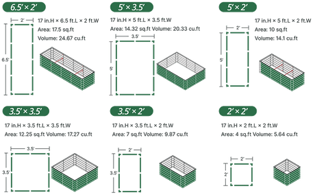 Vegega 17'' Tall 6.5'x2' Modern Raised Garden Bed (6 in 1) v2.0